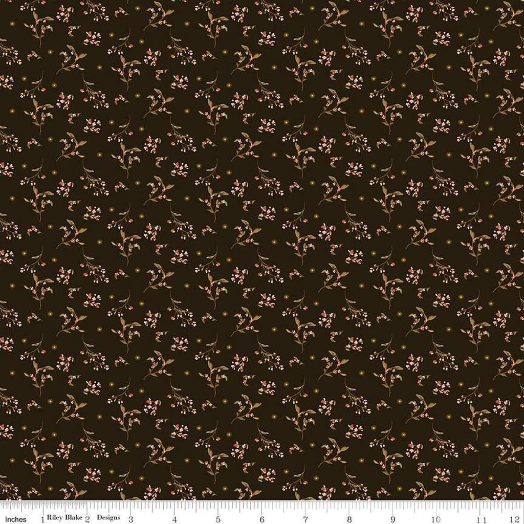 SALE Morning Latte Berries C16925 Espresso - Riley Blake Designs - Leaf Leaves Berry Branches - Quilting Cotton Fabric