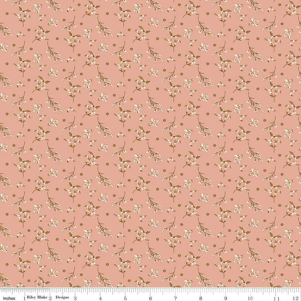 SALE Morning Latte Berries C16925 Pink - Riley Blake Designs - Leaf Leaves Berry Branches - Quilting Cotton Fabric