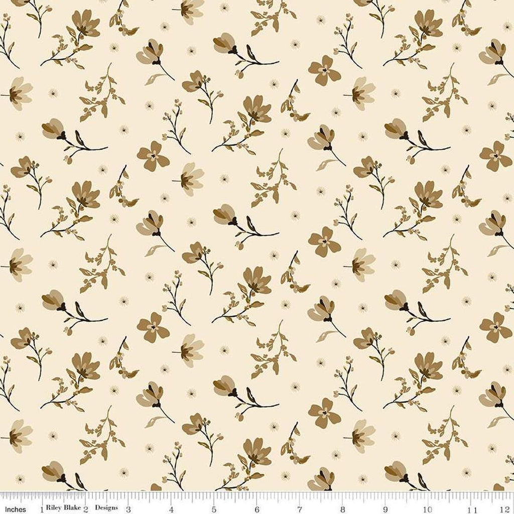 SALE Morning Latte Floral C16921 Latte - Riley Blake Designs - Flowers Blossoms Leaf Leaves Sepia - Quilting Cotton Fabric