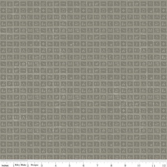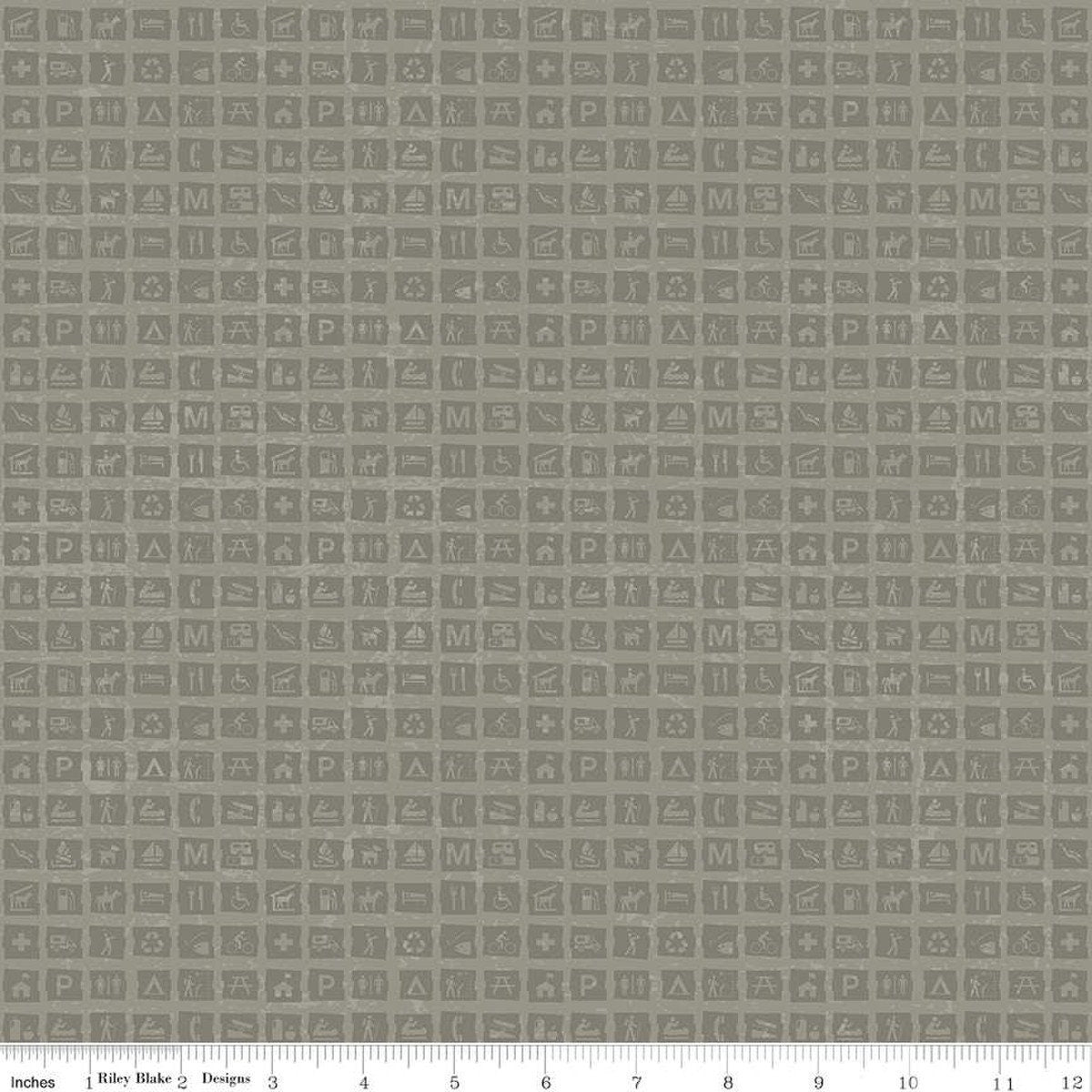 DEAL National Parks Signs C13294 Gray - Riley Blake Designs - Outdoors Tone-on-Tone Signs Icons - Quilting Cotton Fabric