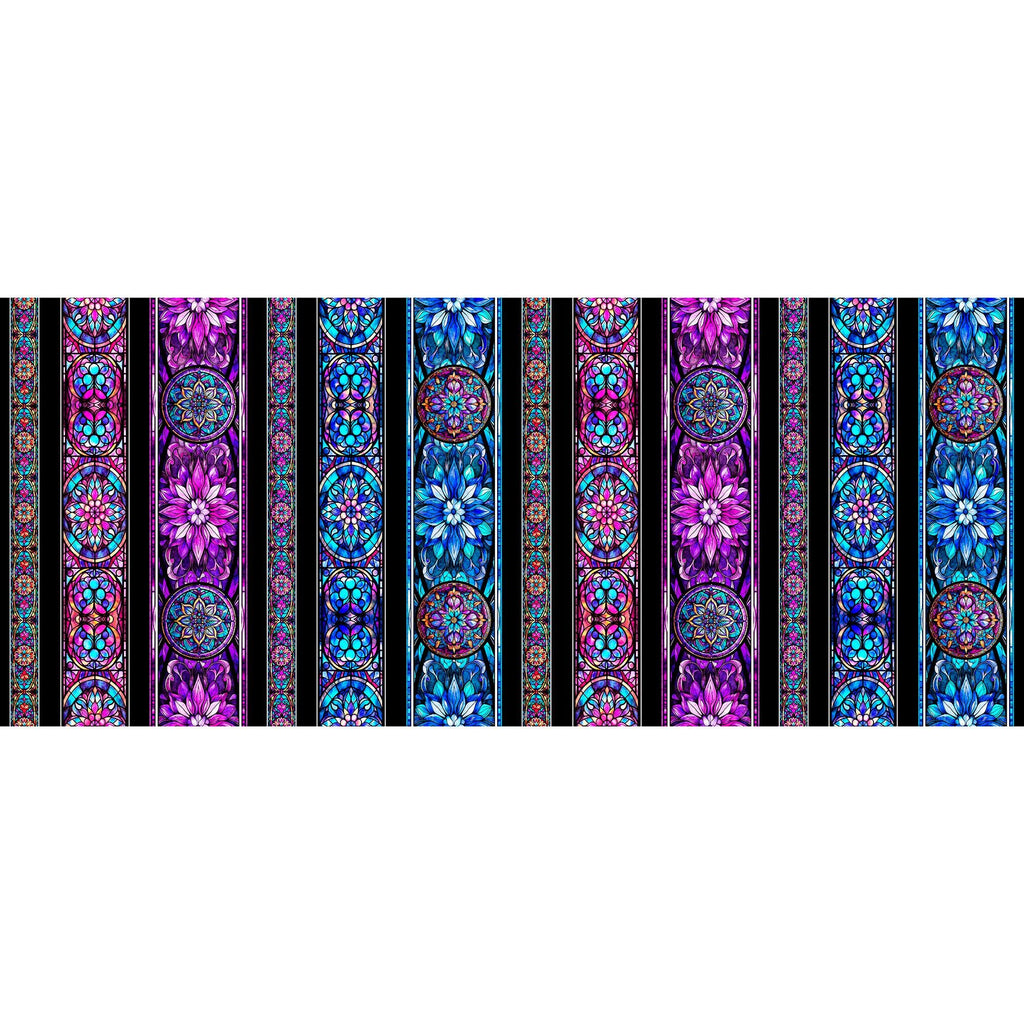 Night Flight Stained Glass Stripe 30752 Multi X - by QT Fabrics - Mandala Colored Glass Floral Flowers - Quilting Cotton Fabric