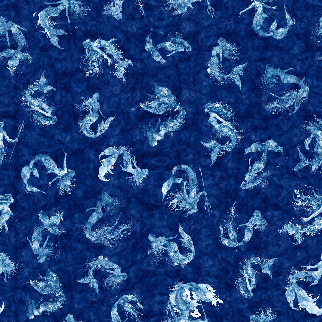 Ocean Blues Mermaids Navy by QT Fabrics 2600 30859 N