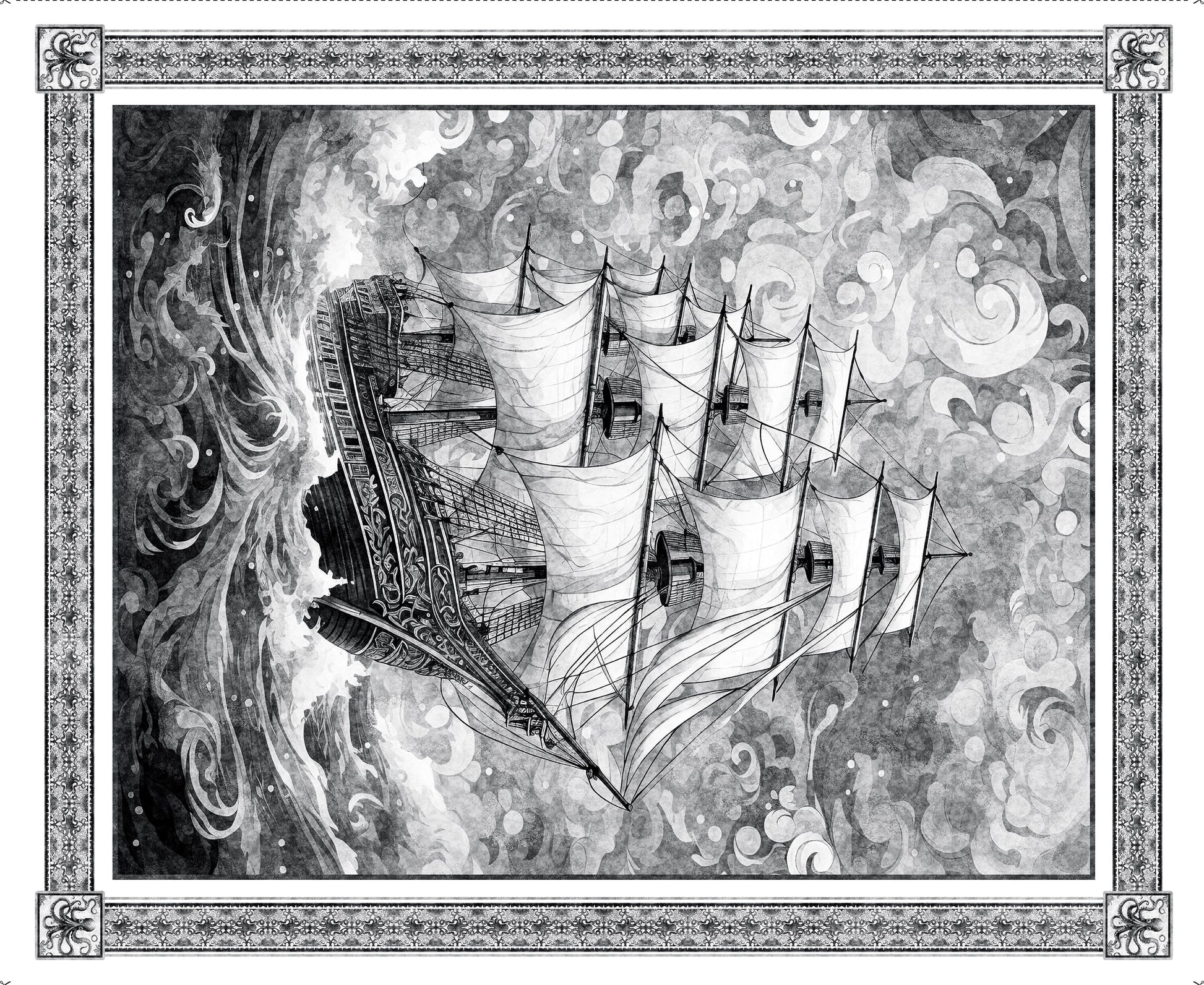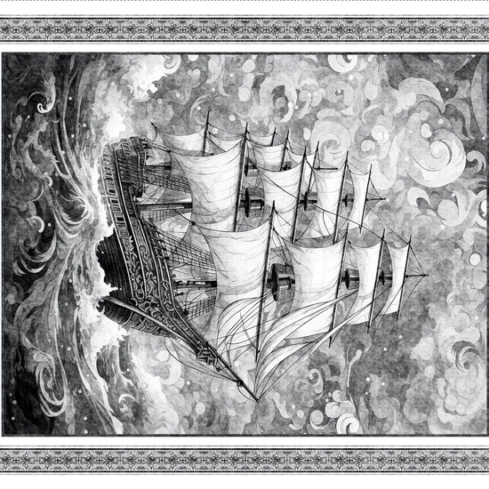 Ocean Blues Ship Panel Charcoal by QT Fabrics 2600 30854 K