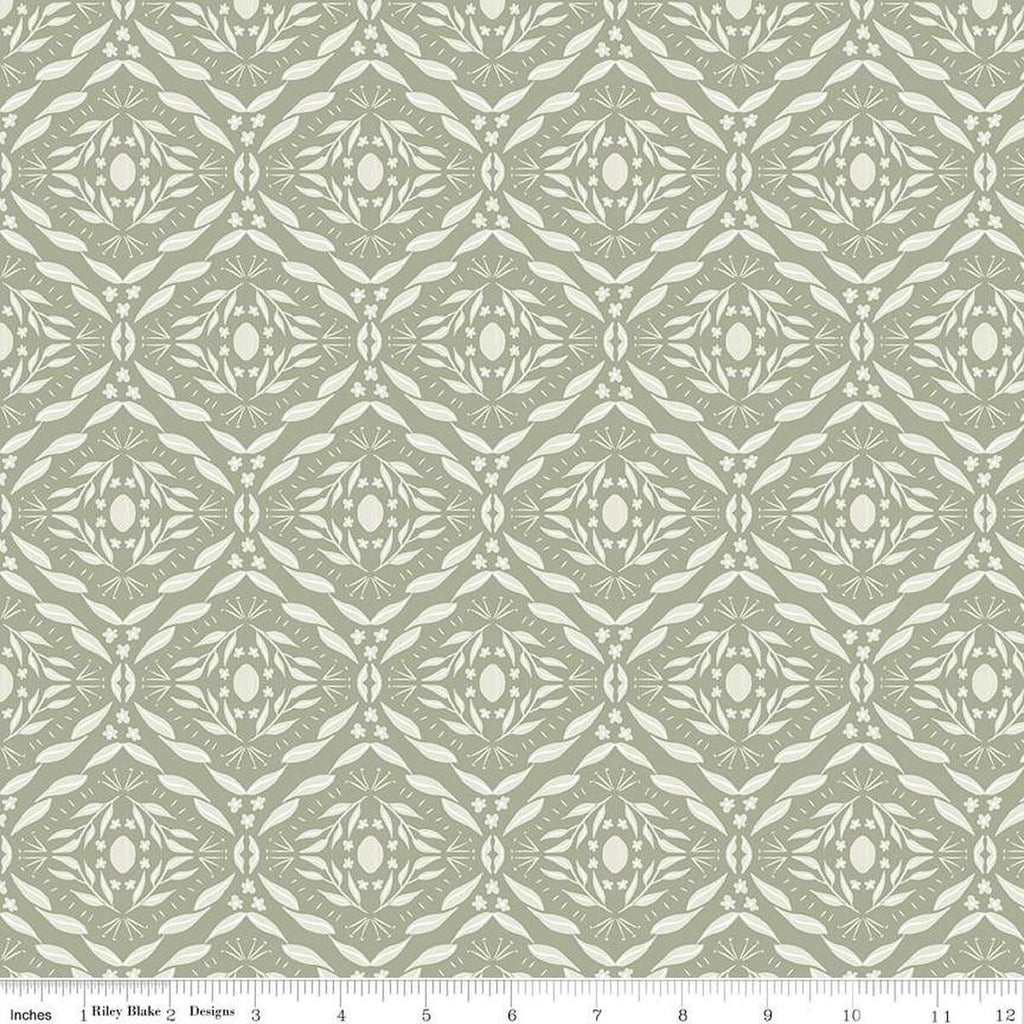 Olive Grove Damask C16633 Sage - Riley Blake Designs - Geometric Kaleidoscope Lace - Quilting Cotton Fabric
