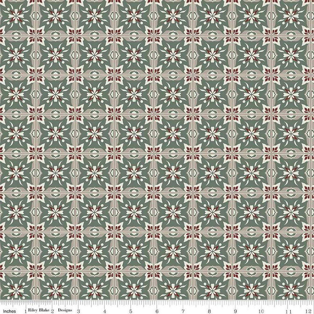 SALE Olive Grove Mill Tiles C16634 Green - Riley Blake Designs - Geometric Squares Floral Flowers - Quilting Cotton Fabric