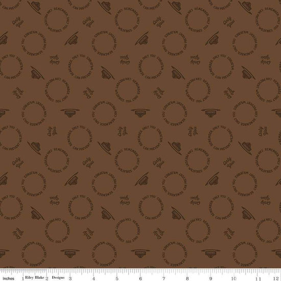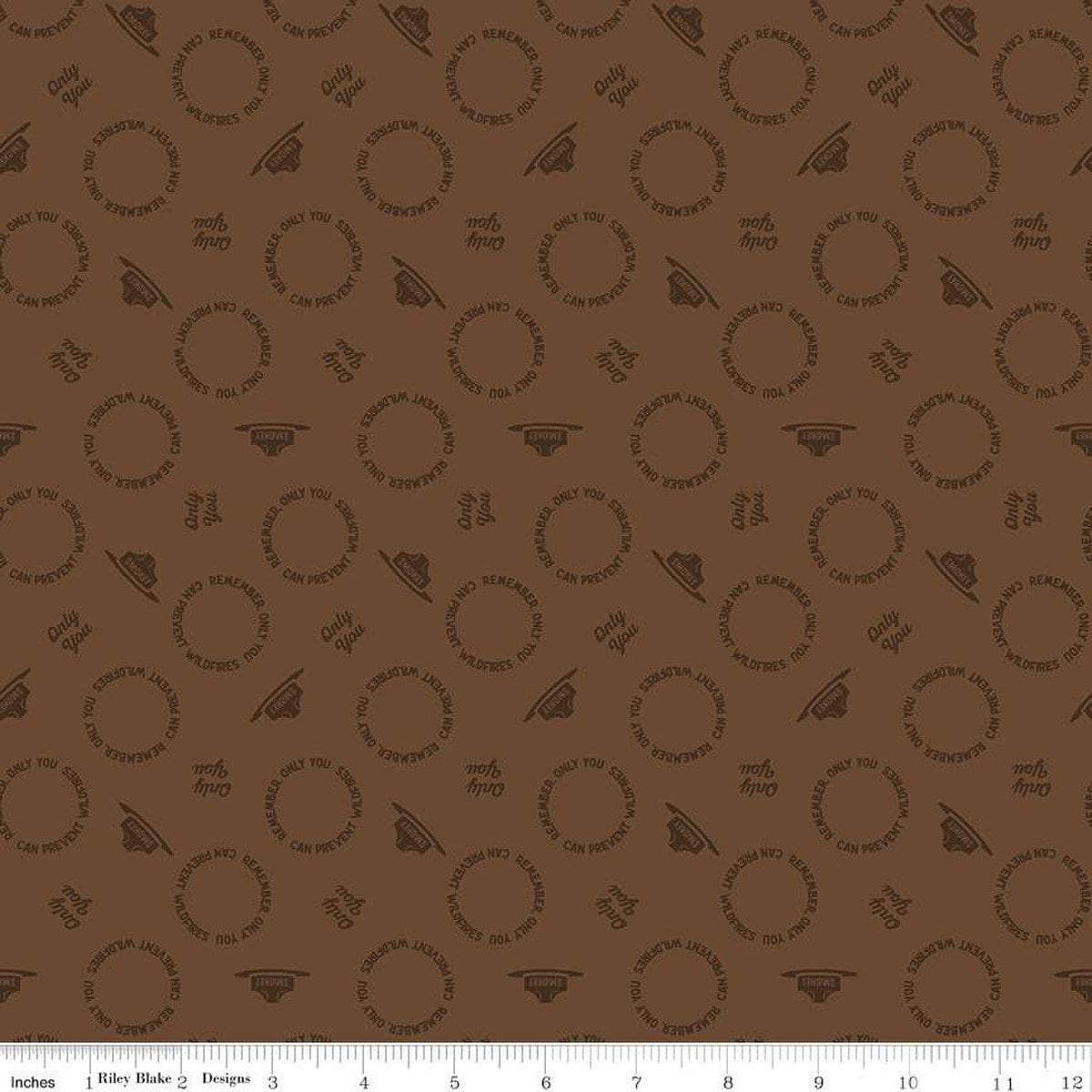 Only You Text Toss C14644 Brown - Riley Blake Designs - Smokey Bear Fire Prevention Hats Text - Quilting Cotton Fabric - Licensed Product