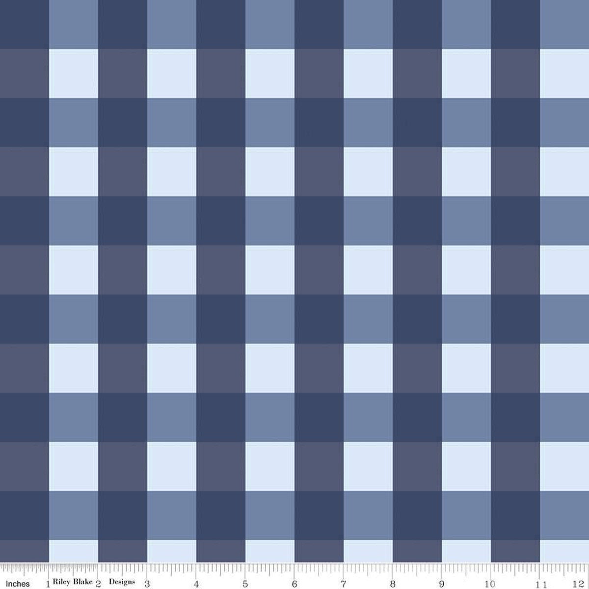CLEARANCE Picadilly Buffalo Plaid C11896 Blue - Riley Blake Designs - Patriotic Independence Day 1" Checks Check - Quilting Cotton Fabric