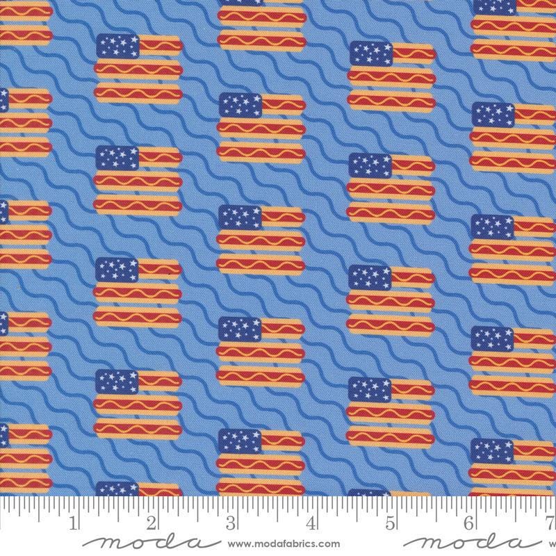 Play Ball Flags 33815 Sky - Moda Fabrics - Sports Hotdogs Stripe - Quilting Cotton Fabric