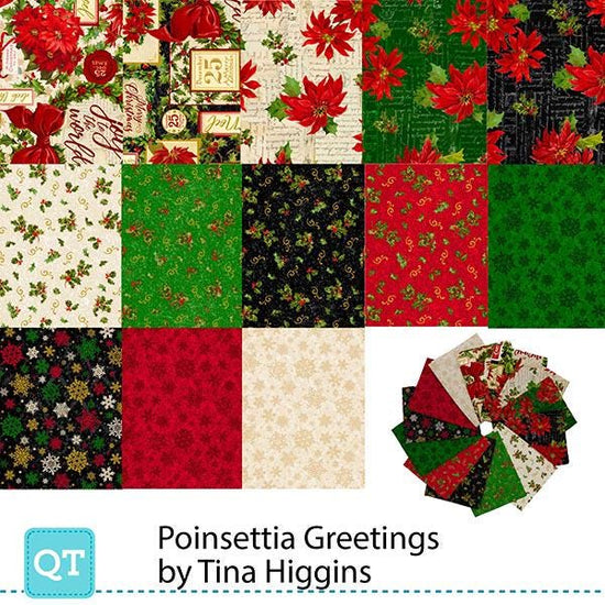 Poinsettia Greetings Fat Quarter Bundle 13 pieces by QT Fabrics FATQU PNGR 3PKI