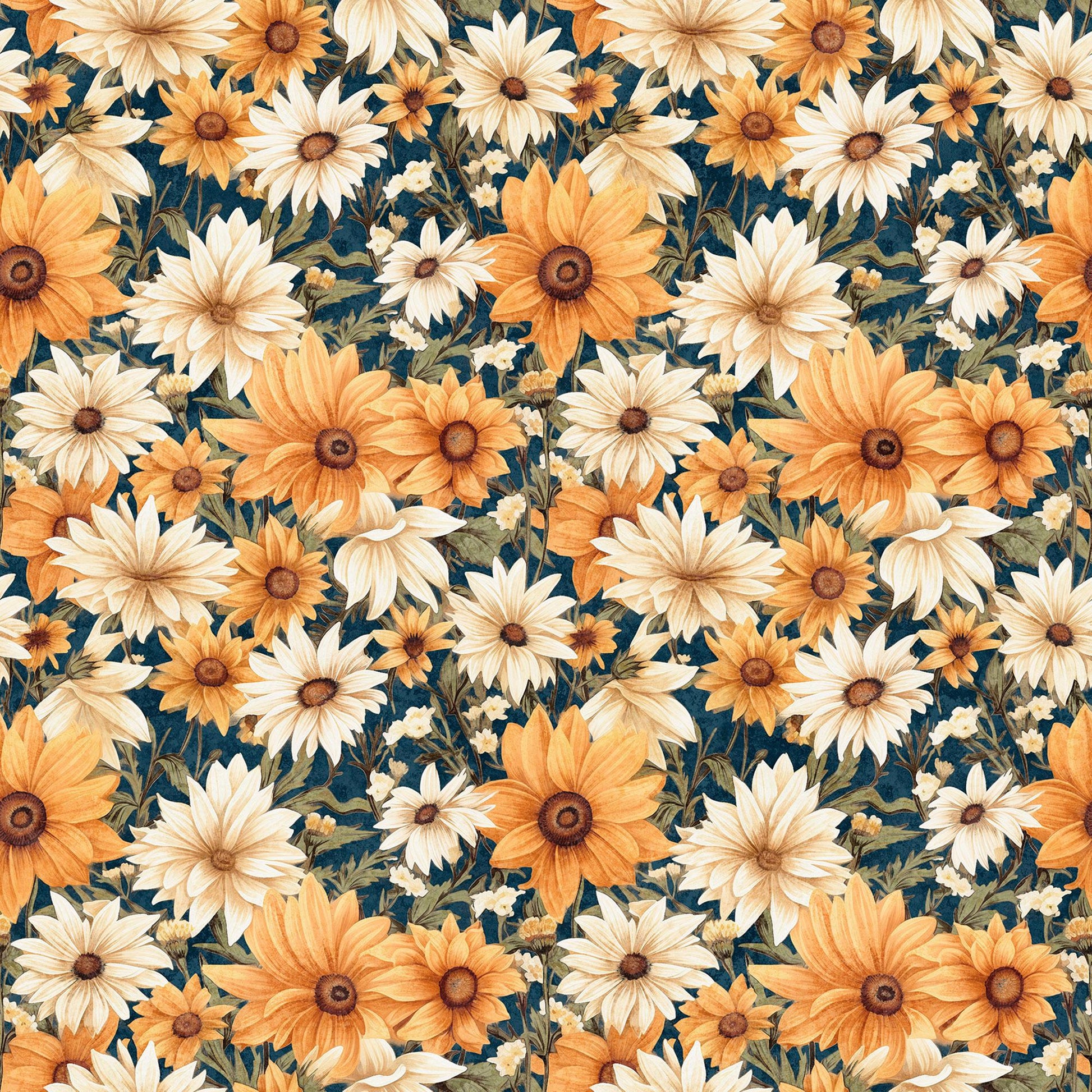 DEAL Queen Bee Packed Floral 30487 Midnight W - - QT Fabrics - Floral Flowers - Quilting Cotton Fabric