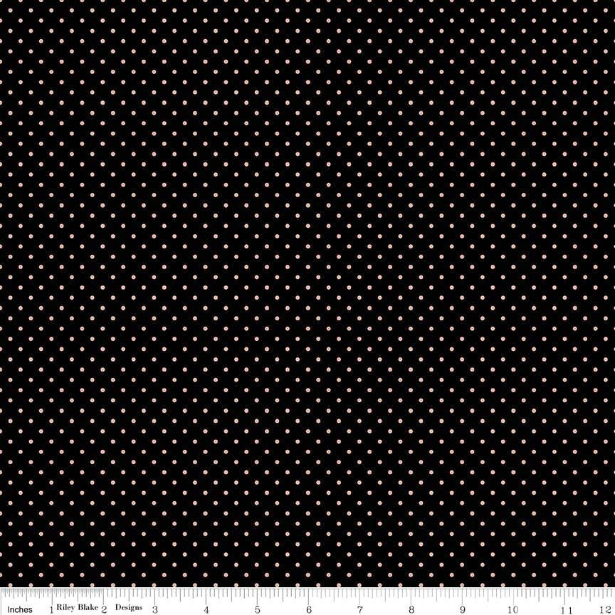 DEAL Rose Gold SPARKLE Flat Swiss Dot on Black - Riley Blake Designs - Polka Dots Copper Metallic -Quilting Cotton Fabric-choose your cut