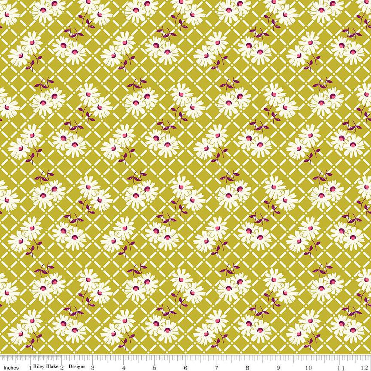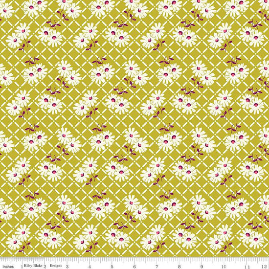 DEAL Adel in Summer Trellis C13391 Pear - Riley Blake Designs - Floral Flowers White Zinnias - Quilting Cotton Fabric