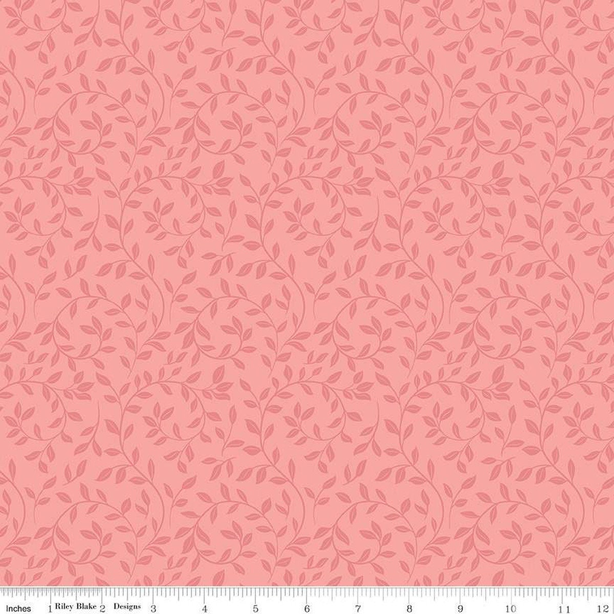 Fat Quarter End of Bolt - At First Sight Vines C12683 Coral - Riley Blake Designs - Leaves Tone-on-Tone - Quilting Cotton Fabric