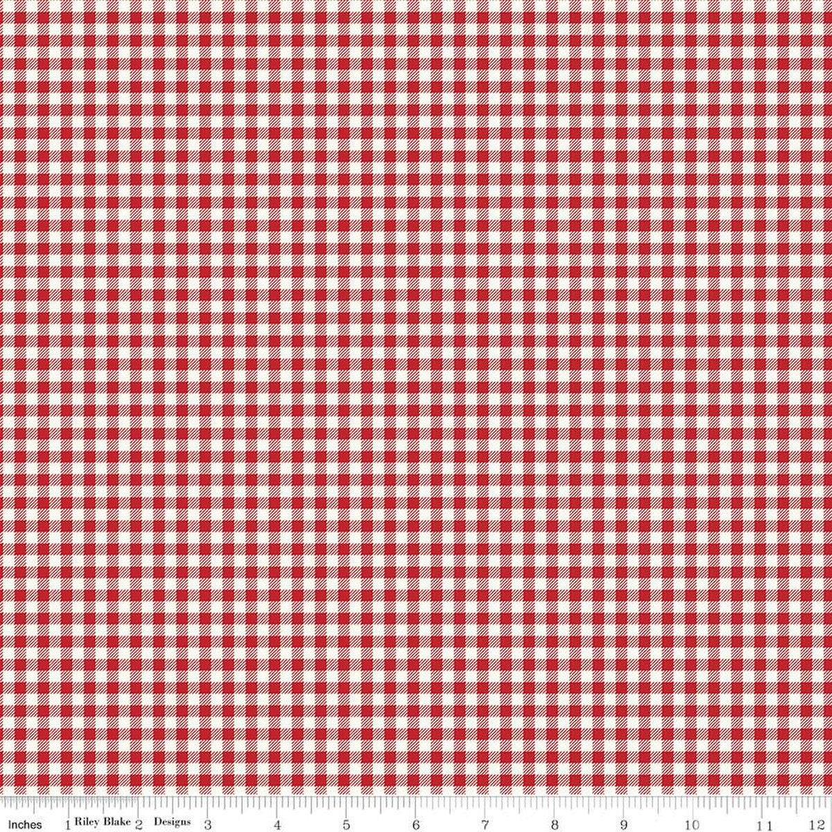 DEAL Bee Ginghams Tina C12553 Schoolhouse Red - Riley Blake Designs - 3/16" PRINTED Gingham Plaid Check - Lori Holt - Quilting Cotton Fabric