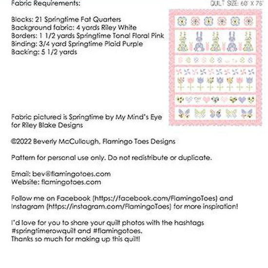 DEAL Sweet Spring Row Quilt PATTERN P138 - Beverly McCullough - Riley Blake - INSTRUCTIONS Only - Pieced Fat Quarter Friendly