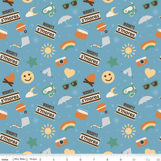 DEAL Camp S'mores Main C13620 Sky - Riley Blake Designs - Hershey Camping Suns Stars Tents Cameras Rainbows - Quilting Cotton Fabric