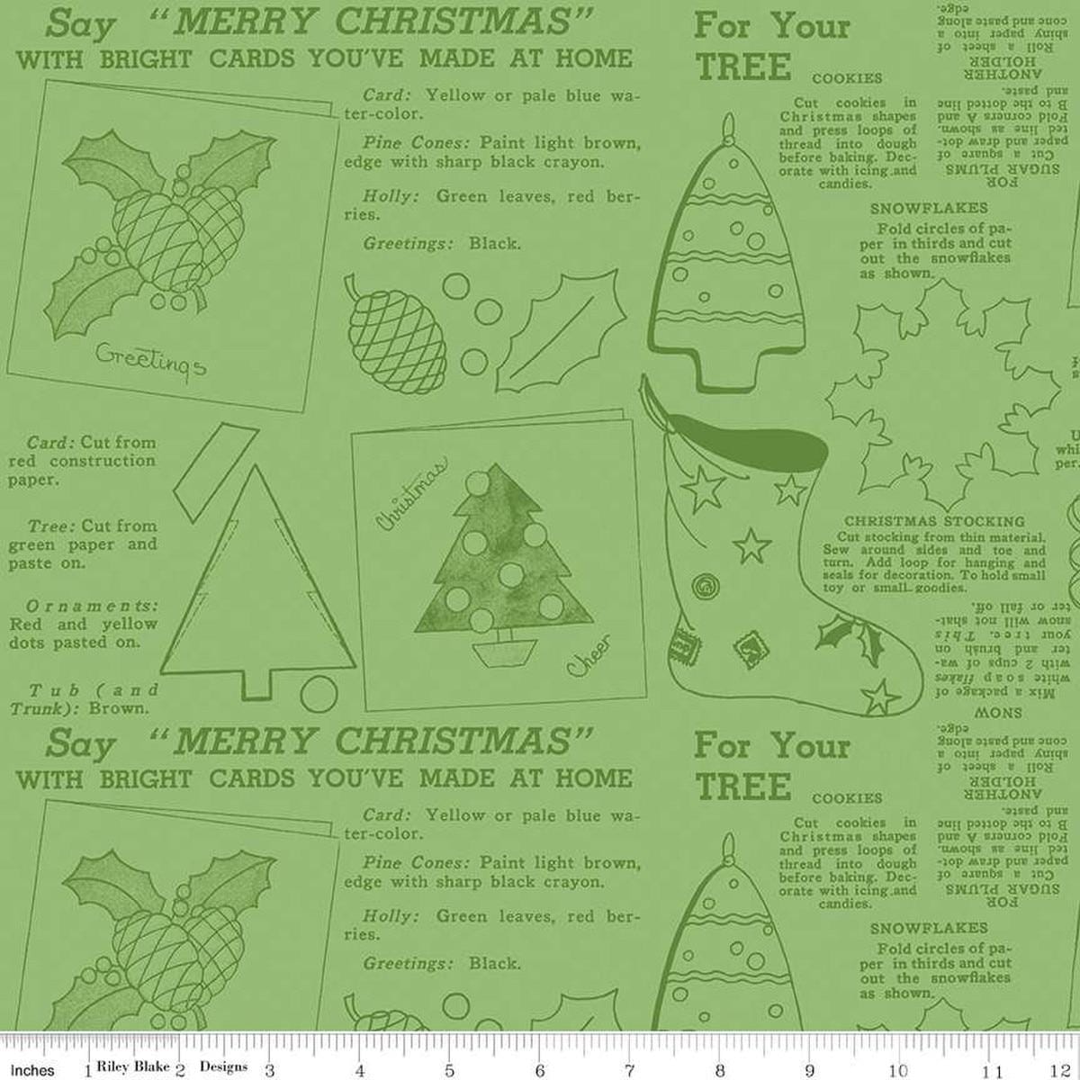Classic Christmas Handmade C16290 Green - Riley Blake Designs - Icons Text Outline Shapes - Quilting Cotton Fabric