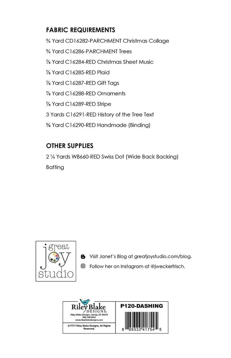 INSTRUCTION ONLY patterns to construct the Dashing quilt.