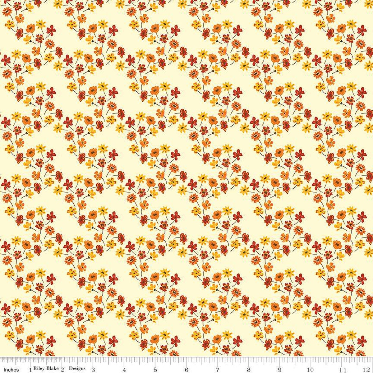 DEAL Fall's in Town Floral C13515 Cream - Riley Blake Designs - Thanksgiving Autumn Flowers - Quilting Cotton Fabric