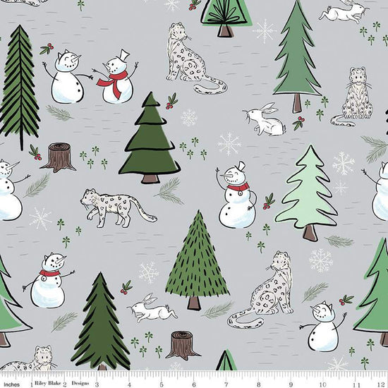 16" End of Bolt - CLEARANCE FLANNEL Snow Leopard Main F13190 Silver - Riley Blake - Winter Leopards Snowmen Trees Rabbits - FLANNEL Cotton