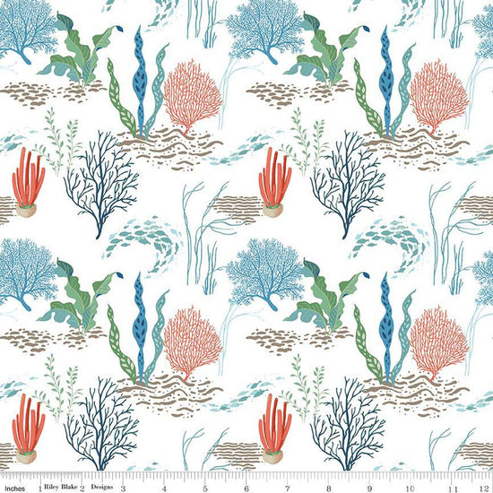 Free as the Ocean Reef C14801 White - Riley Blake Designs - Ocean Plants - Quilting Cotton Fabric