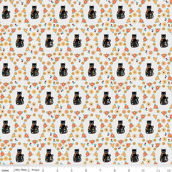 DEAL Haunted Adventure Spooky Kitties C13112 Silver - Riley Blake Designs - Halloween Cats Cat Kittens Flowers - Quilting Cotton Fabric