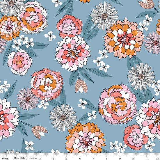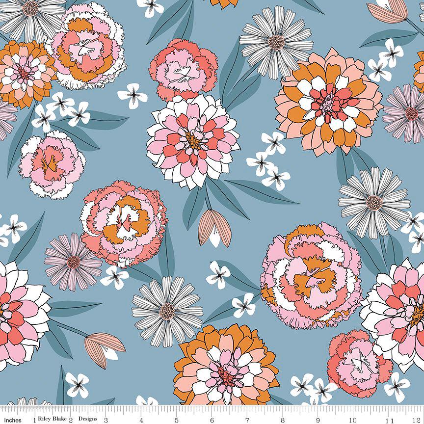 DEAL Heartsong Main C11300 Blue - Riley Blake Designs - Floral Flowers Blossoms - Quilting Cotton Fabric