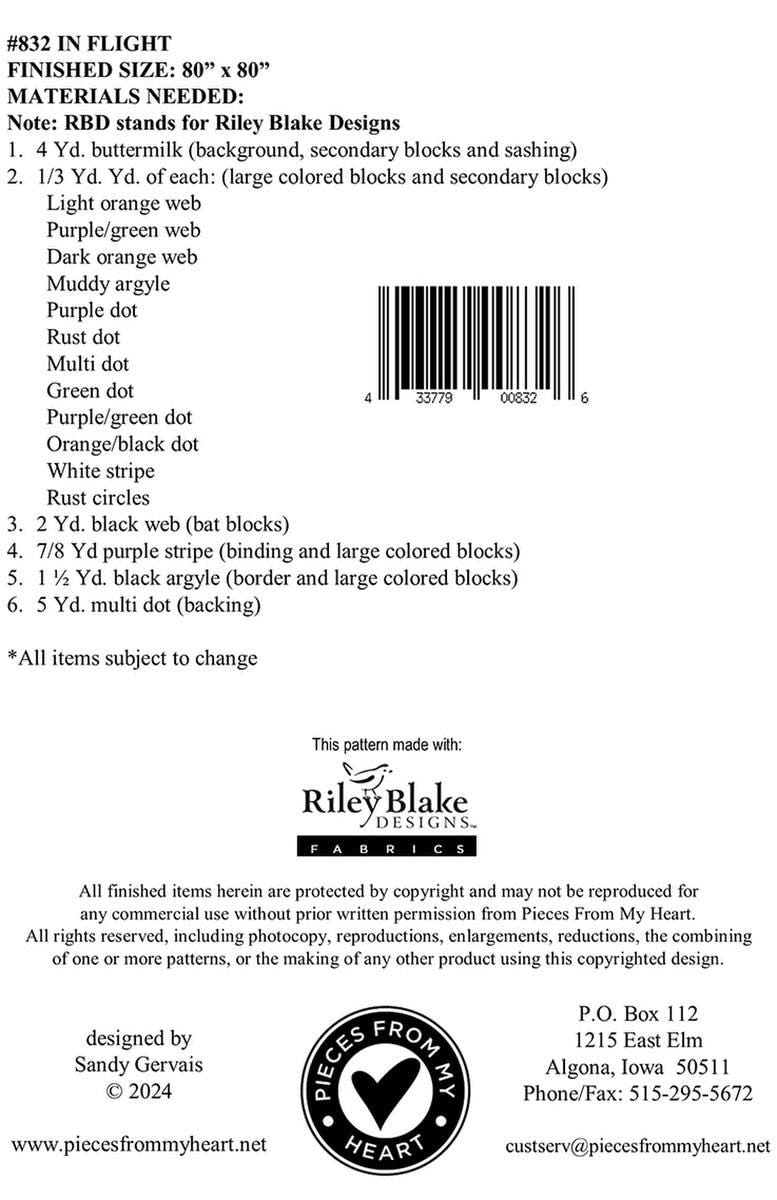 DEAL In Flight Runner Quilt PATTERN P157 - Sandy Gervais - Riley Blake Design - INSTRUCTIONS Only - Bats Squares