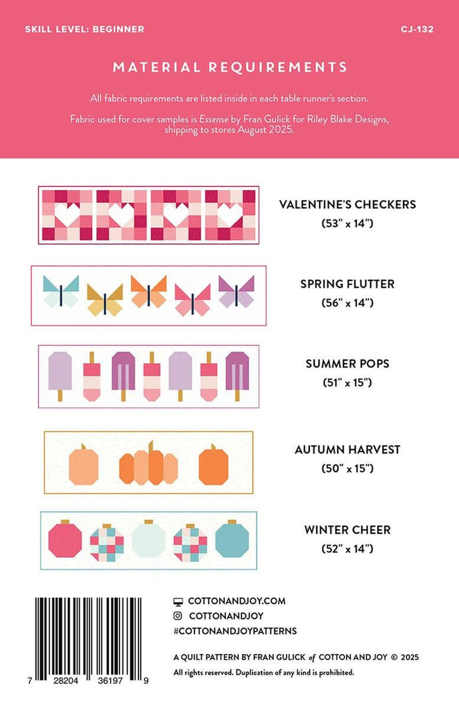 SALE Joyful Holidays Table Runner Quilt PATTERN P173 by Fran Gulick - Riley Blake Designs - INSTRUCTIONS Only - Five Designs - Beginner