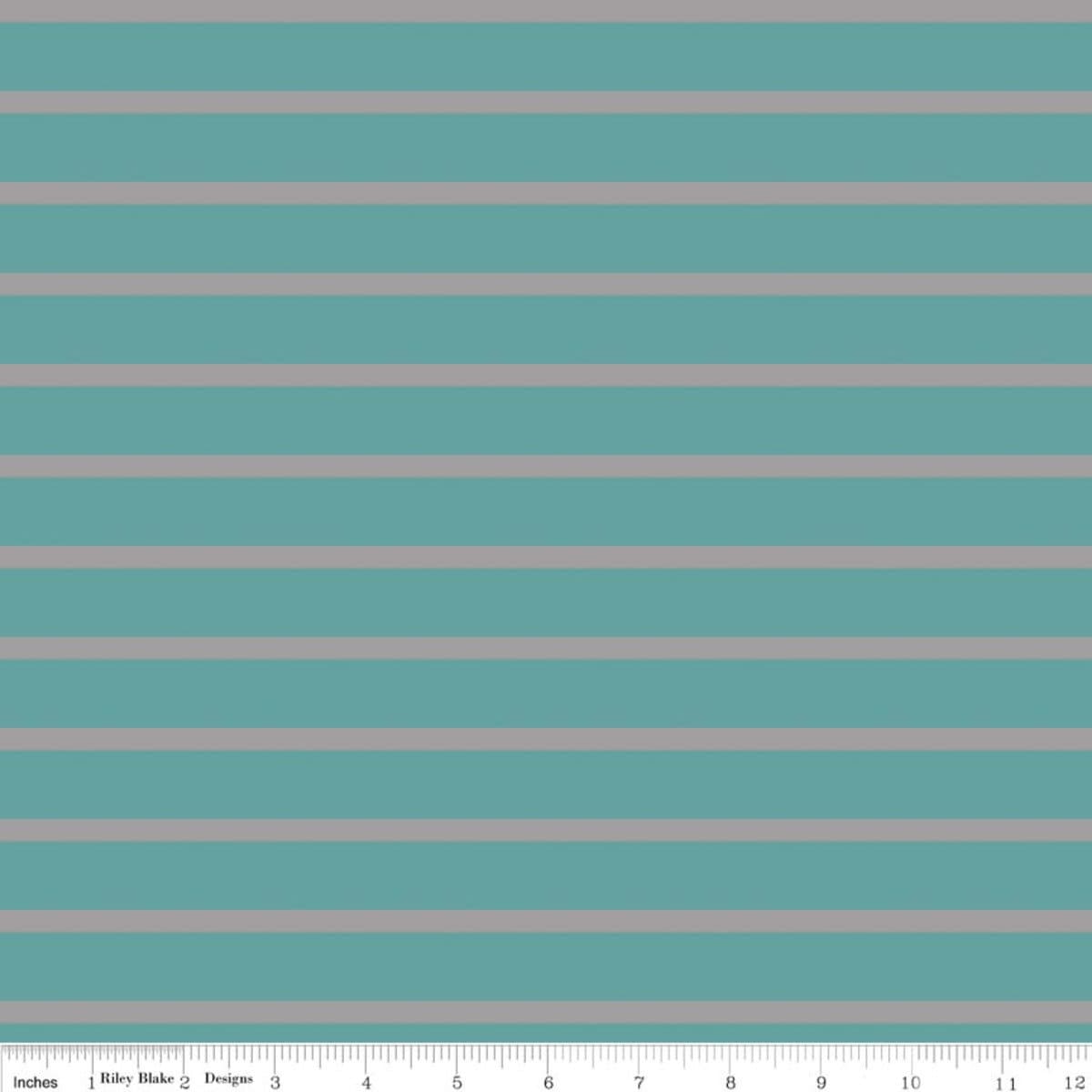 CLEARANCE KNIT Gray Teal 1/4" Stripe K535 - Riley Blake Designs - Blue Green Jersey KNIT Cotton Stretch Fabric