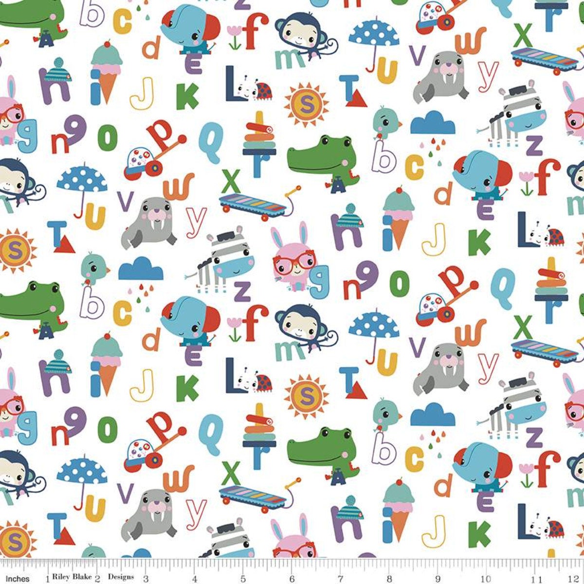 Let's Play Alphabet C11882 White - Riley Blake Designs - Fisher-Price Animals Toys Letters - Quilting Cotton Fabric - Licensed Product