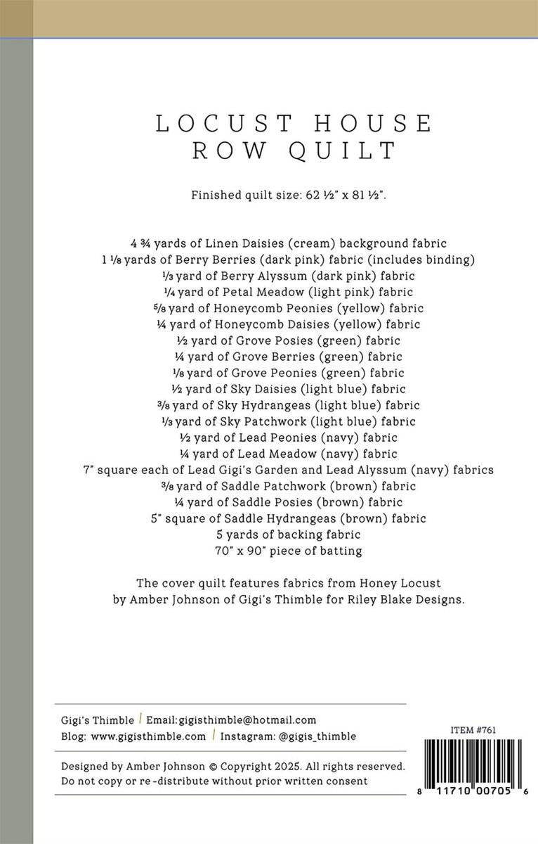 INSTRUCTION ONLY to construct the Locust House Row quilt in multiple sizes.