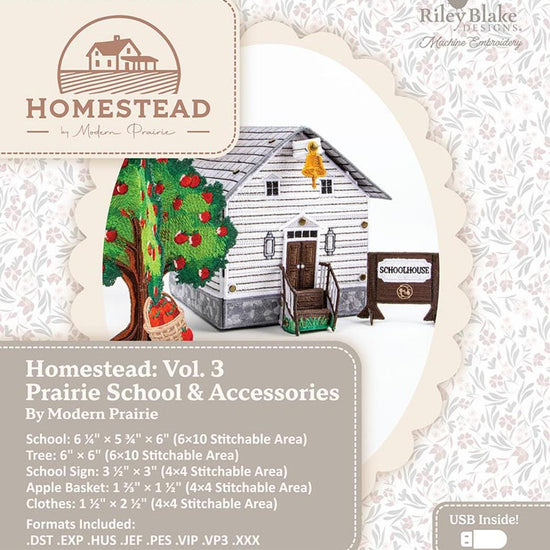 DEAL Machine Embroidery Homestead Prairie Schoolhouse INSTRUCTIONS ME207PH0325 - Riley Blake Designs - USB File Free Standing School