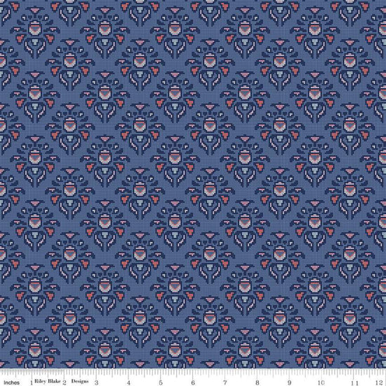 KNIT Midnight Rose Damask Navy by Riley Blake Designs K9164-blue