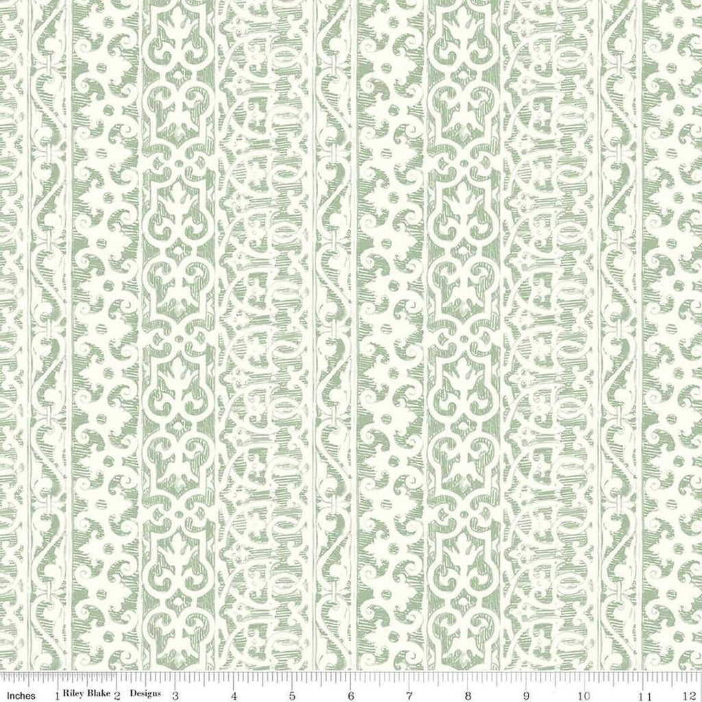 Nature's Portrait Filigree C15672 Sage - Riley Blake Designs - Stripes Geometric Sketching - Quilting Cotton Fabric- Licensed Product