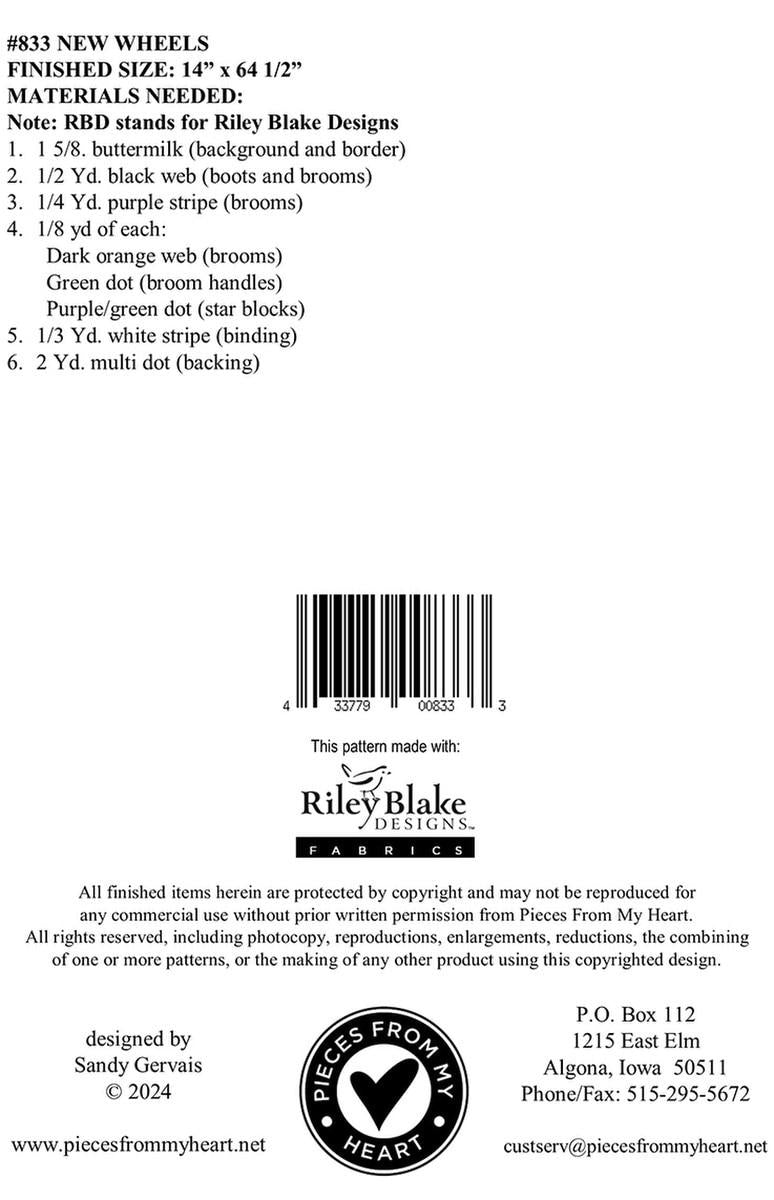 New Wheels Runner Quilt PATTERN P157 - Sandy Gervais - Riley Blake Design - INSTRUCTIONS Only - Halloween Witch Broom Boots