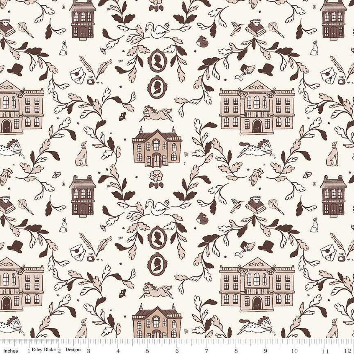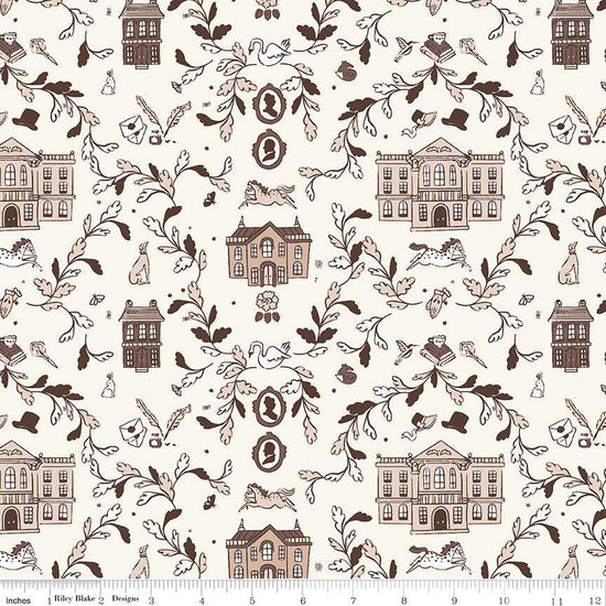 DEAL Pride & Prejudice Pemberley C13770 Cream - Riley Blake Designs - Jane Austen Houses - Quilting Cotton Fabric - Licensed Product
