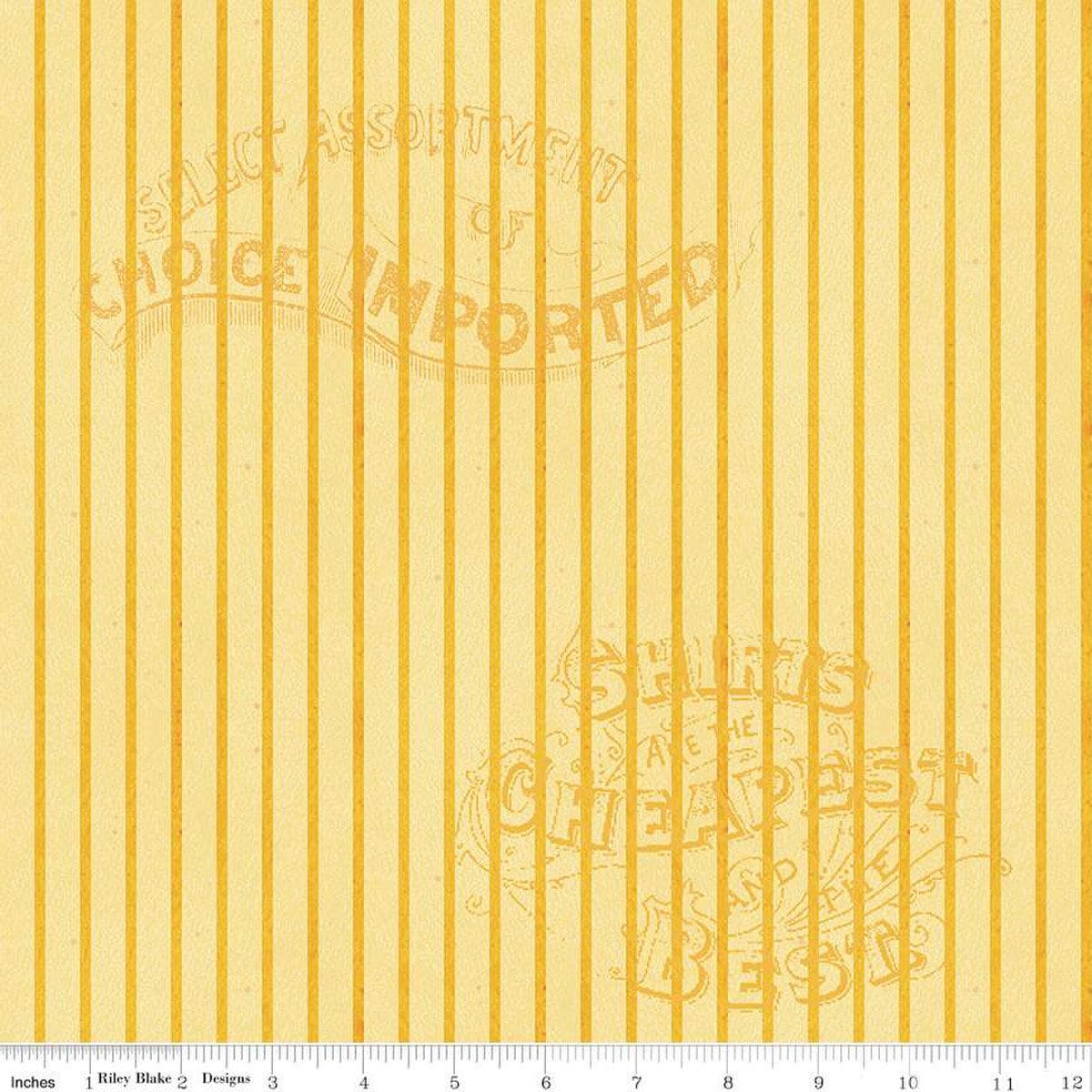 CLEARANCE Pumpkin Patch Silver Lining Stripe C14581 Yellow - Riley Blake - Halloween Text - J. Wecker Frisch - Quilting Cotton Fabric