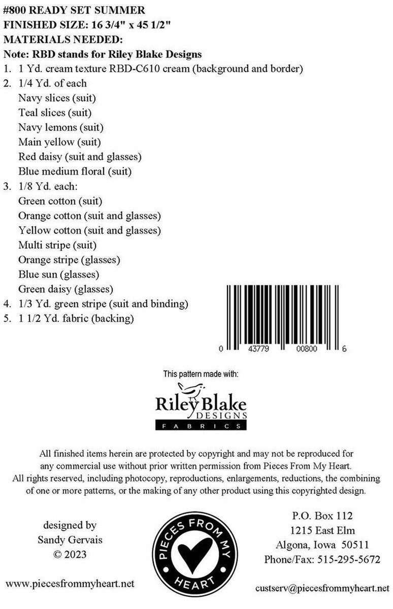 DEAL Ready Set Summer Runner PATTERN 157 - Sandy Gervais - Riley Blake Designs - INSTRUCTIONS Only - Piecing