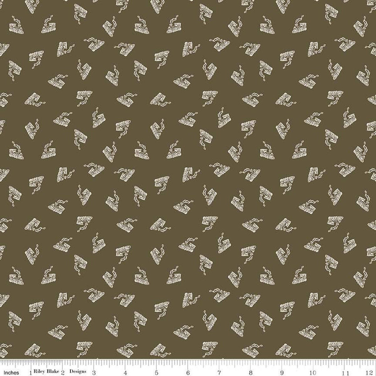 CLEARANCE 'Round the Mountain All Aboard C13813 Brown - Riley Blake Designs - Trains Locomotives - Quilting Cotton Fabric