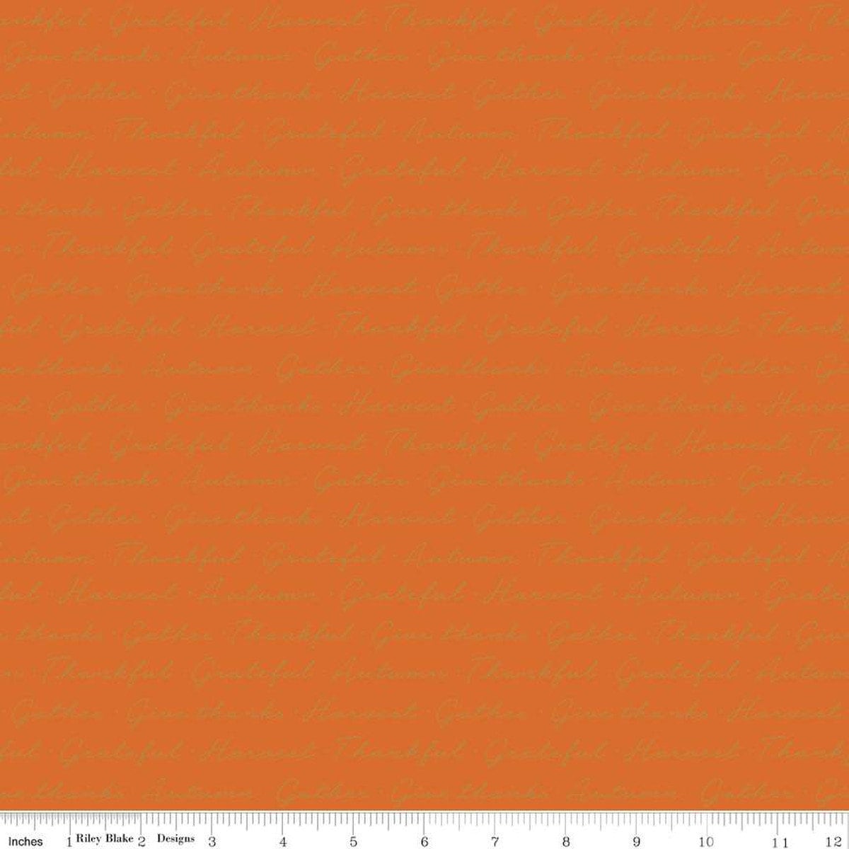 CLEARANCE Shades of Autumn Script SC13477 Orange SPARKLE - Riley Blake - Thanksgiving Fall Text Gold SPARKLE - Quilting Cotton
