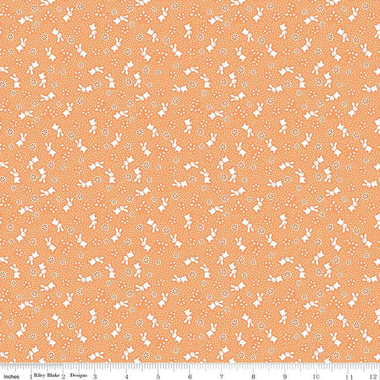 Storytime 30s Bunnies C13869 Orange - Riley Blake Designs - Rabbits Blossoms Dots - Quilting Cotton Fabric