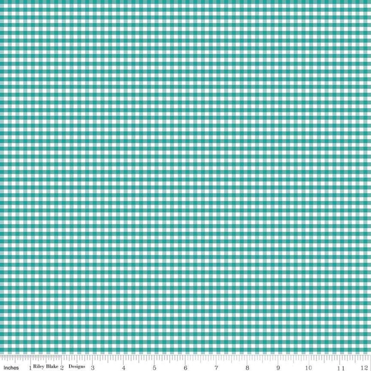 Teal & White 1/8" Eighth Inch Small PRINTED Gingham - Riley Blake Designs - Blue Checker - Quilting Cotton Fabric