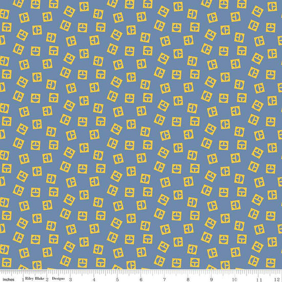 Vintage Caterpillar Logo Toss Blue by Riley Blake Designs C13843-BLUE
