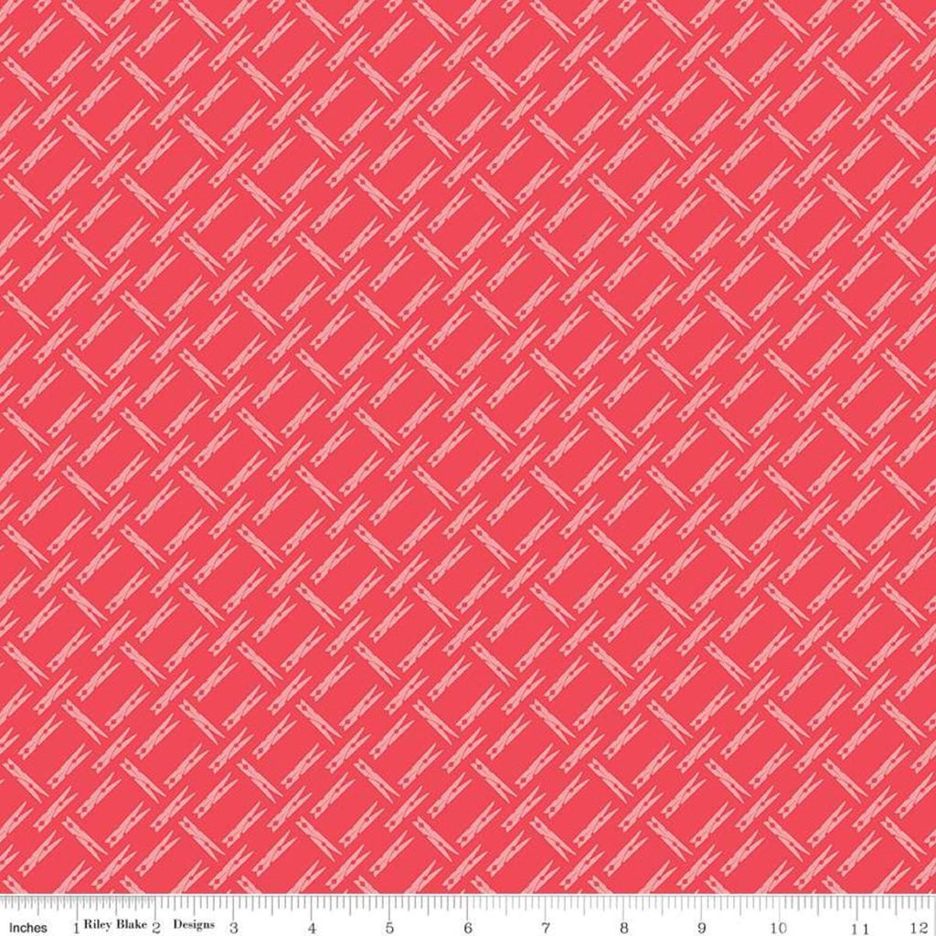 SALE Vintage Happy 2 Clothespins C9143 Cayenne by Riley Blake Designs - Lori Holt - Clothing Pins - Quilting Cotton Fabric
