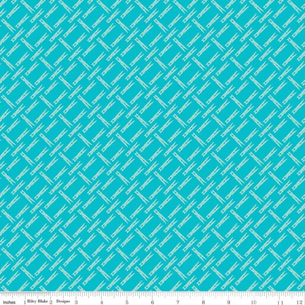 SALE Vintage Happy 2 Clothespins C9143 Peacock by Riley Blake Designs - Lori Holt - Clothing Pins - Quilting Cotton Fabric