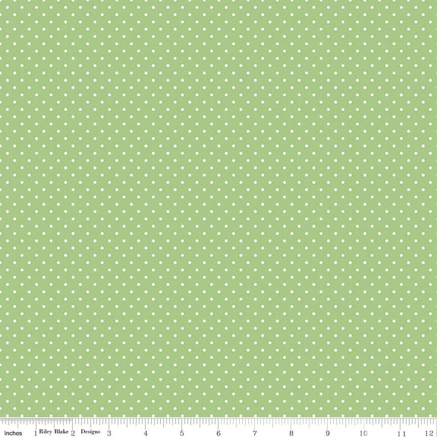 DEAL White on Green Flat Swiss Dots - Riley Blake Designs - Polka Dot - Quilting Cotton Fabric