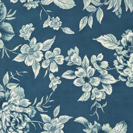 DEAL Sandalwood Camellia 44381 Indigo - Moda Fabrics - Floral Flowers Blossoms Petals Leaves Leaf - Quilting Cotton Fabric