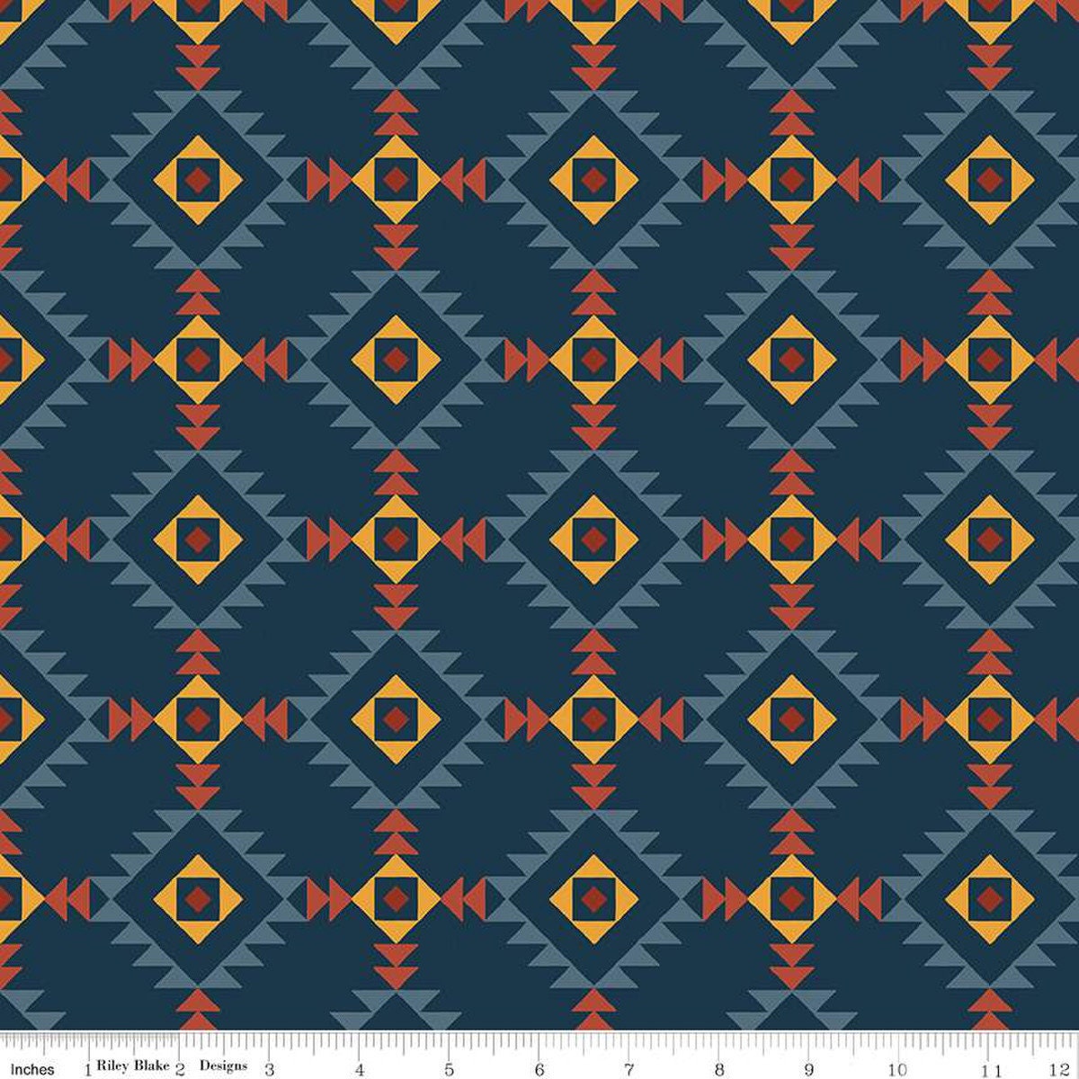 12" End Of Bolt - Santa Fe Triangles C13381 Navy - Riley Blake Designs - Geometric Southwest Southwestern - Quilting Cotton Fabric