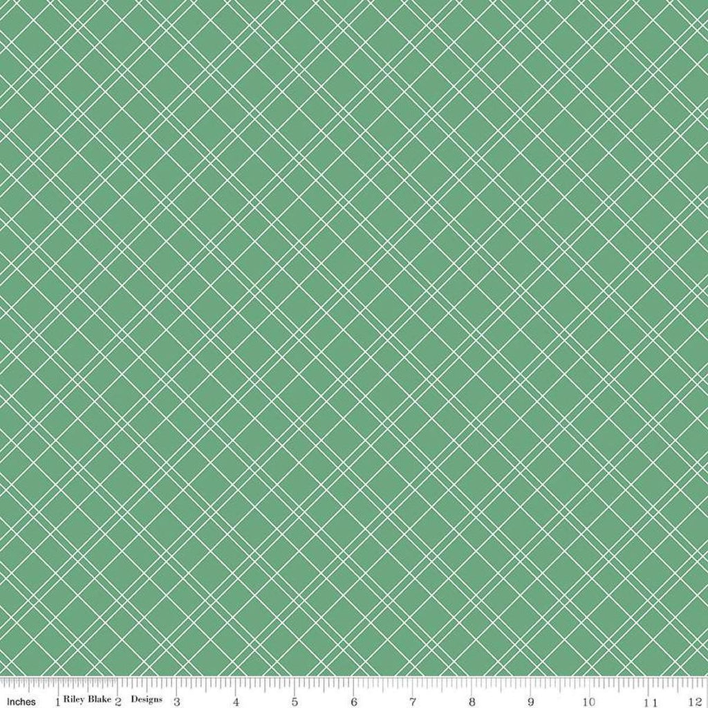 Simple Pleasures Grid C16657 Grass - Riley Blake Designs - Diagonal Plaid Lines Stripe Check - Quilting Cotton Fabric